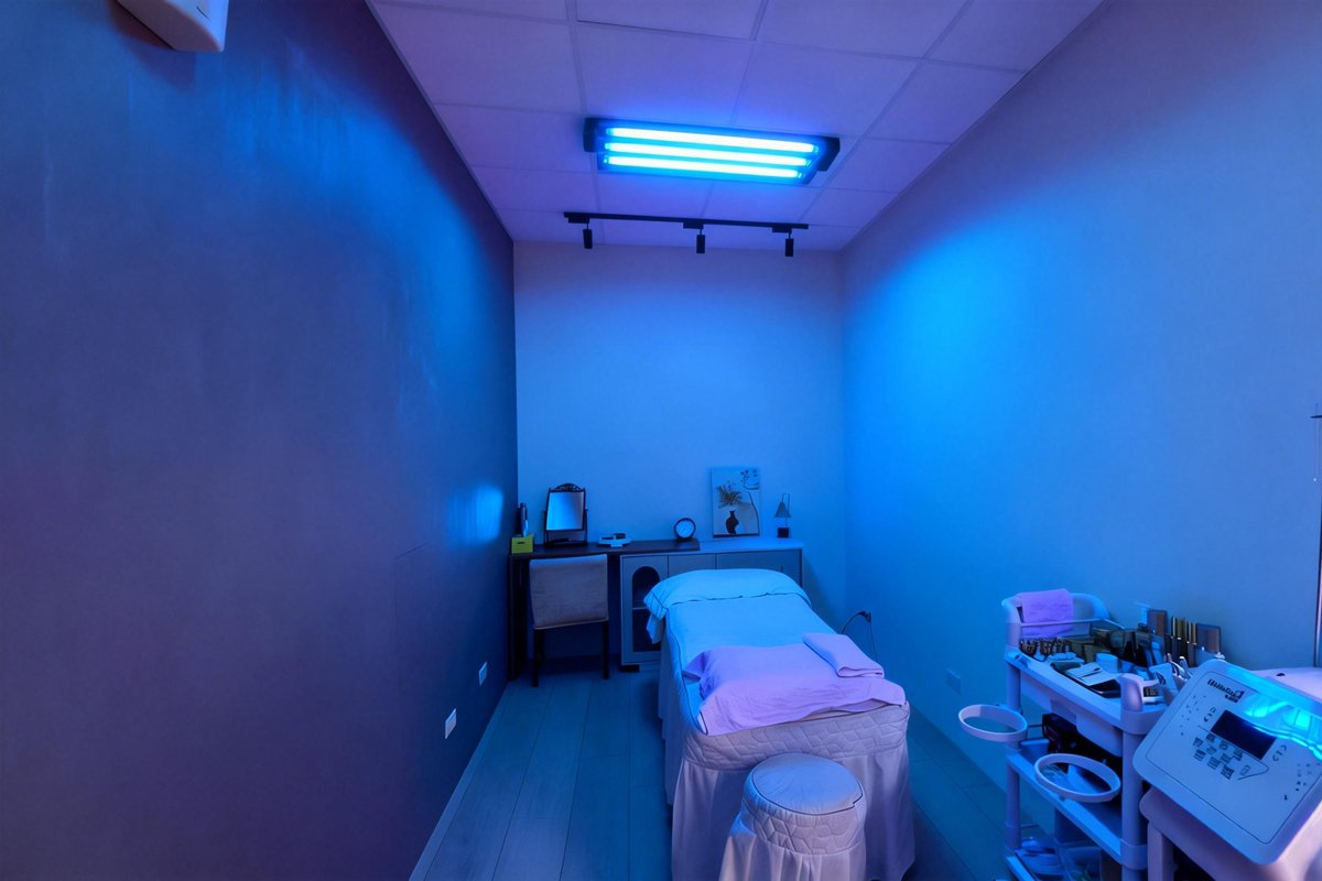 室內配備紫外線燈全室殺菌 ,每日凌晨自動進行空間消毒;所有工具消毒,以 3 種以上的方式完整消毒,確保衛生安全。